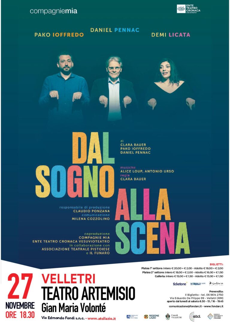 Prosegue fino al 24 Marzo 2023 la stagione d’eccellenza per i 130 anni del Teatro Artemisio Volonté, Domenica 27 Novembre la scena è tutta per Daniel Pennac. Sarà lui, affiancato da Pako Ioffredo e Demi Licata e con la regia di Clara Bauer, ad animare lo spettacolo “Dal sogno alla scena”. La poesia del teatro entra nel vivo della parola scritta dal grande romanziere francese esplorando le pieghe oniriche della sua produzione, sul filo di un percorso che intreccia il racconto diretto con diversi passaggi degli ultimi adattamenti teatrali di Daniel Pennac. Tra i testi che prenderanno vita sul palco: La Legge del Sognatore, Storia di un corpo, Bartleby – Mon Frère, Grazie, L’avventura Teatrale – Le mie italiane. E’ noto che Daniel Pennac talvolta parte dai sogni come fonte d’ispirazione letteraria. Pako Ioffredo, Demi Licata e Daniel Pennac, interpretando danno vita a dei personaggi e riproducono quelle immagini affinché lo spettatore viva la sensazione di essere sedotto, come in un sogno, da un effetto di realtà. I protagonisti con le musiche di Alice Loup e Antonio Urso e la mise en espace di Clara Bauer, incontrano il 27 Novembre il pubblico in quella linea di confine fra interpretazione e narrazione, lettura e recitazione. Nota Pennac: “Quando sogniamo il nostro cervello produce delle immagini che si trasformano in sensazioni, bellissime, se ricordiamo i sogni come meravigliosi, terribili, li definiamo incubi al nostro risveglio. Immagini e sensazioni non possono essere spiegate per come sono, abbiamo bisogno di utilizzare la parola. Nel momento che ci affidiamo alle parole, immagini e sensazioni non saranno più le stesse, la nostra intelligenza diurna le reinterpreterà, così nasce il racconto. Un racconto che vive in un diverso stato dell’intelligenza, quella analitica e narrativa, miracolosamente evocativa, differente dalle immagini che abbiamo intensamente vissuto nel nostro universo notturno, non meno efficace nel ridonare a chi ascolta le stesse sensazioni”. “Dal sogno alla scena” si tiene in lingua italiana ed in lingua francese tradotta dal vivo in italiano. Luogo iconico e storico di Velletri e di tutto il Lazio, esempio di strenua sopravvivenza all’alternarsi delle vicende e alle chiusure dei teatri, il Teatro Gian Maria Volonté fu inaugurato come Teatro Artemisio nel 1893, salvato da una prima chiusura da Eduardo De Filippo nel 1983, supportato dal Volonté nei primi anni Novanta, per tornare operativo – nel suo nome – nel 2012.