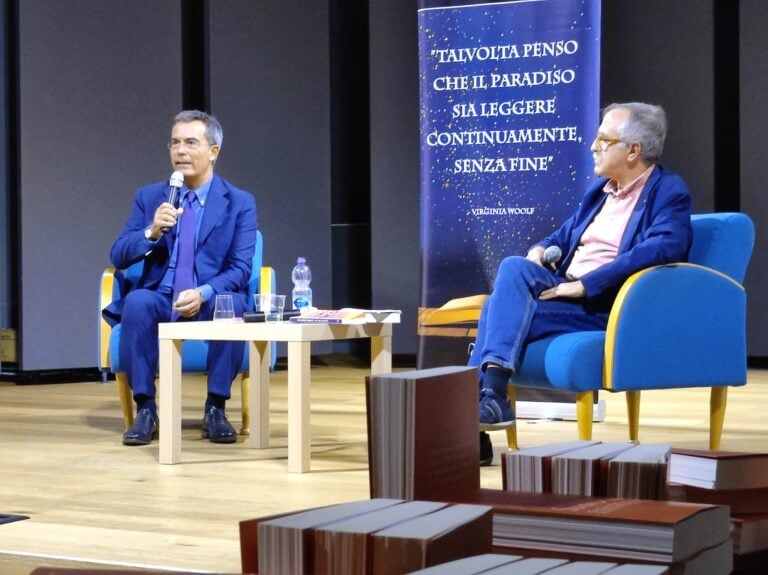 Il libro protagonista, di cui si è parlato nel dialogo con il professor Daniele Dibennardo, è “Il gioco” (edito da Solferino), un romanzo sospeso tra il giallo e la commedia ambientato in una scuola. Floris muove la sua narrazione da un capovolgimento della consueta realtà: e se dietro la scomparsa di una studentessa modello anziché esserci gli indiziati bulli ci fossero gli insospettabili, ovvero i docenti? “Il mio sogno è essere solo uno scrittore”, ha detto l’autore, “ma non è così. Però cerco, con la scrittura, di affrontare temi a me cari come ad esempio il decadimento del ruolo dei docenti. Il declino sociale e politico di questo paese è a mio avviso dovuto al fatto che non sappiamo più risolvere i problemi e abbiamo perso l’amore per la comprensione. Spesso speriamo che le cose non siano complicate come in realtà sono, ci mancano certe categorie mentali”, ha detto in apertura, sottolineando il legame fra la letteratura e il giornalismo: fare ordine nel caos.