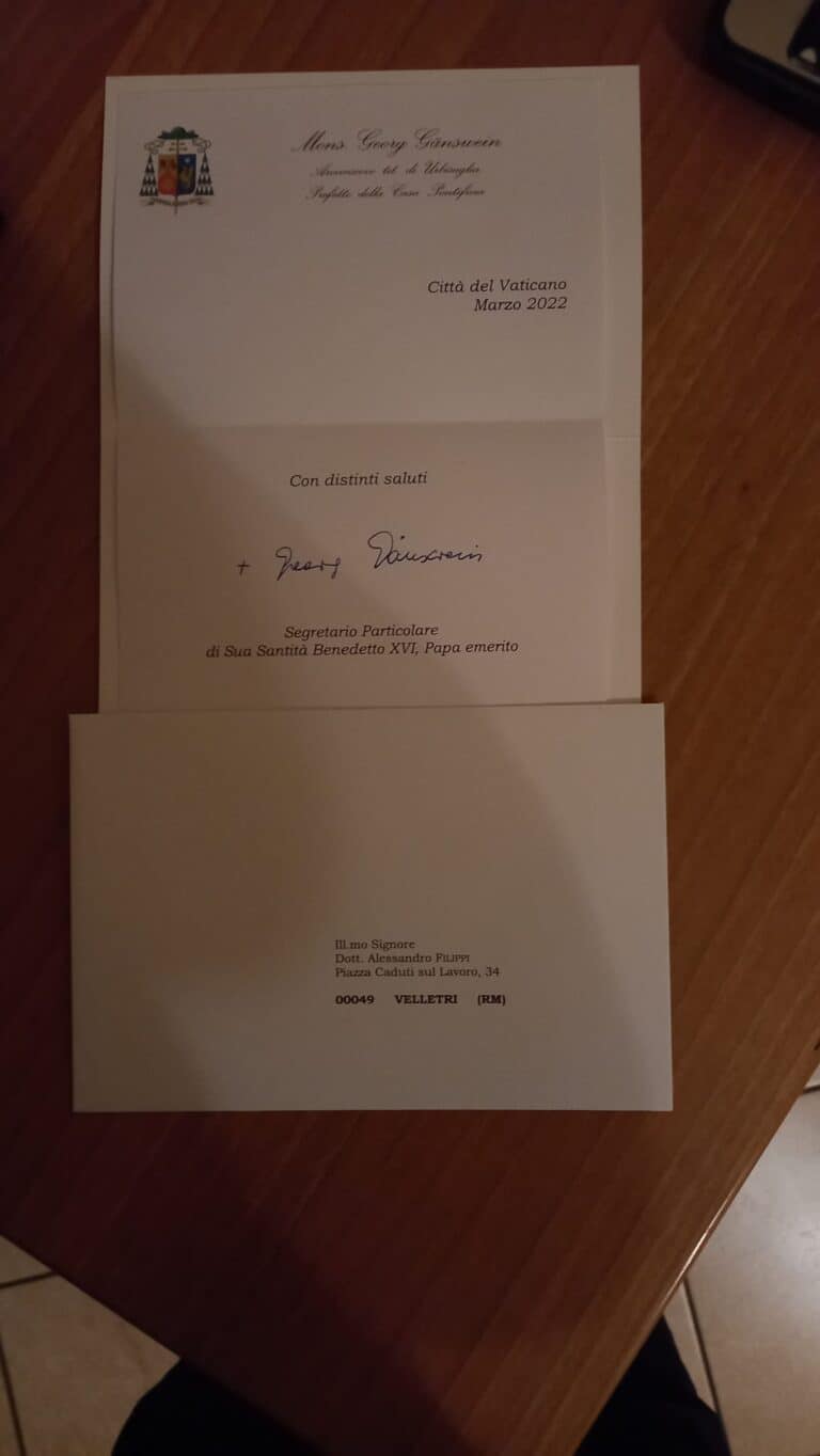 Questo testimonia che nonostante gli eventi abbiano cambiato il corso della storia il legame di Papa Benedetto XVI con quella che è stata la sua diocesi per dodici lunghi anni è sempre forte e la città di Velletri è sempre nel suo ricordo e nelle sue preghiere.