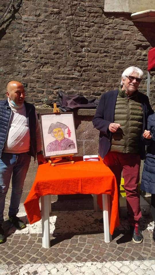 I figli del maestro, Ricky e Gianmarco Tognazzi, presenti in piazza, guardando il ritratto si sono lasciati andare ai ricordi su “Nell’Anno del Signore” e a quelli della collaborazione del loro padre con Gigi Magni. Ricky ha ricordato come in “Arrivano i Bersaglieri” interpretasse Urbano, l’unico morto della battaglia di Porta Pia. Un ringraziamento va al Cav. Annino e a Simona Ottaviani per aver pensato alla Fondazione Magni –Mirisola consentendoci così di ricordare un grande film ancora tra i cento film campioni d’incasso.