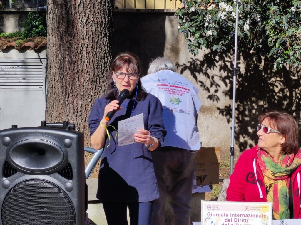 Alle 10 in punto, alla presenza della vice-sindaca Giulia Ciafrei – tra le partecipanti alla pedalata – e del presidente del Consiglio Comunale Sergio Andreozzi sono partiti i tre grupponi, caratterizzati anche dalle mimose appese alle bici o tenute tra le mani. Un giro ciclistico di 10 km, uno più breve di 5 km – scortati dai sempre disponibili soci dell’Associazione che hanno fatto da apripista e chiudi-pista – e una passeggiata per le vie del centro in contemporanea hanno popolato Velletri per poi ritrovarsi alla Villa Ginnetti, in quel Piazzale Clementina Caligaris la cui intitolazione fu voluta proprio da Memoria ‘900 per ricordare una grande donna e il suo impegno politico.