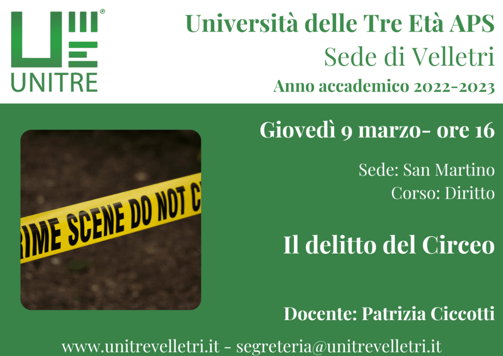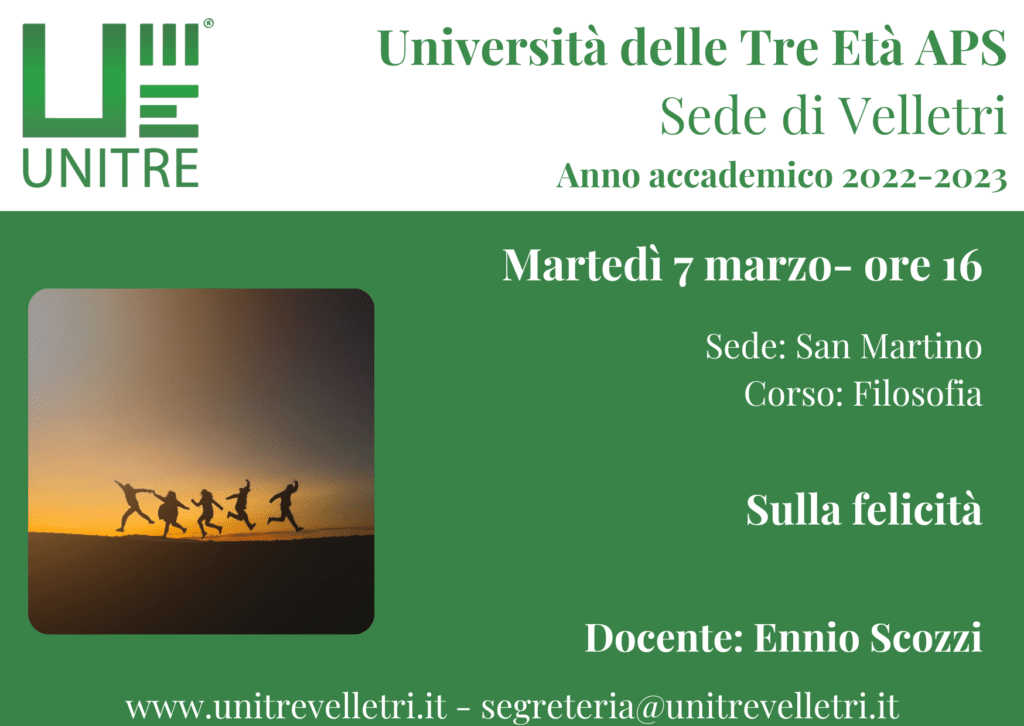 Martedì 7 marzo, alle 16 a San Martino, lezione di Filosofia con il professor Ennio Scozzi e una lezione “sulla felicità”. Giovedì 9 marzo, invece, sempre a San Martino alle 16, Patrizia Ciccotti terrà una lezione sul delitto del Circeo, tornato in voga con la serie Netflix dedicata, nell’ambito del corso di Diritto.