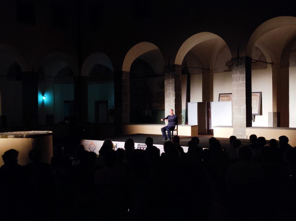 Proprio il direttore artistico, nell’accogliere le tante persone nuovamente accorse nel Chiostro del seicentesco ex Convento del Carmine, ha parlato di “viaggio”: un cammino condiviso, tra artisti e pubblico, in sedici serate tra aprile e settembre dove a essere protagoniste assolute sono state le forme d’arte pura, dal teatro alla musica. Giacomo Zito ha dato il benvenuto a Marco Baliani, che con la sua mimica e i precisi mutamenti vocali ha immediatamente trascinato gli spettatori all’interno della storia. La storia di Michele Kohlhaas muove da un fatto di cronaca accaduto nel ‘500 in Germania. Scritto da Heinrich von Kleist, narra di un sopruso irrisolto generatore di violenze.