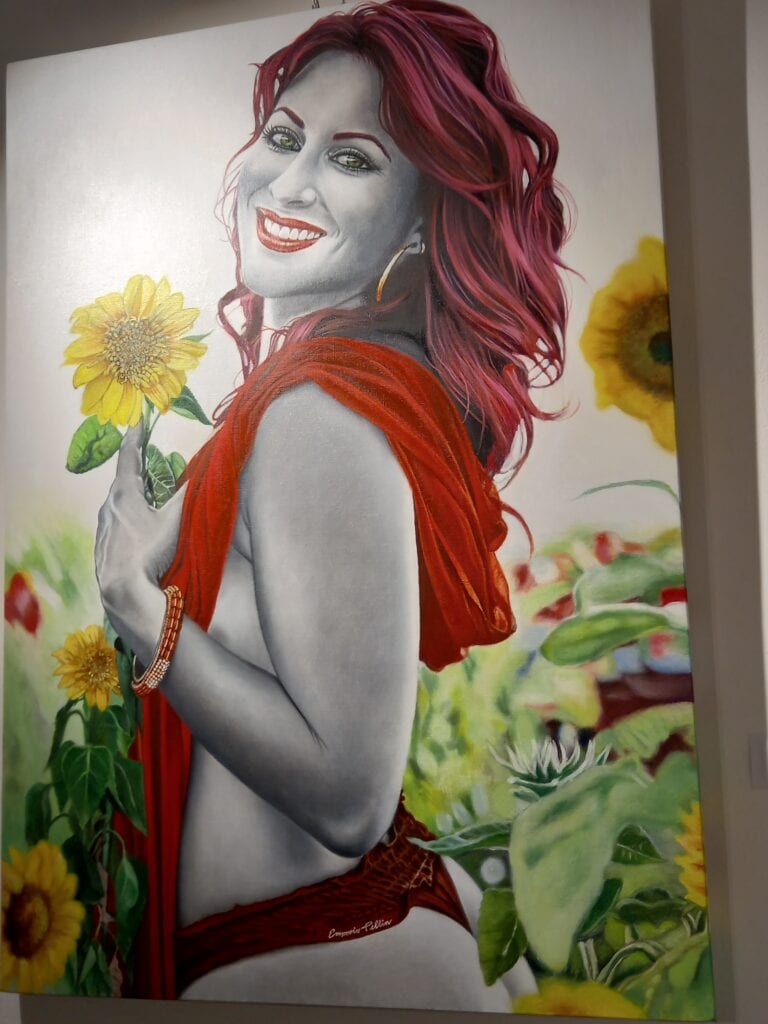 La vivacità e ricchezza cromatica delle tele ha conquistato tutto il pubblico; del resto, chi conosce la cifra artistica di Cinzia Pellin sa che l’artista predilige il ritratto di grandi dimensioni caratterizzato da un minuzioso e quasi maniacale realismo dei particolari. Su tutto, poi, spicca la scelta di colorare di un rosso acceso le labbra e le unghie delle protagoniste, particolari che divengono così il focus dell’opera e attirano lo sguardo dello spettatore.
