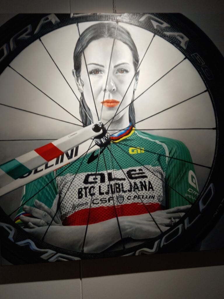 Accanto alla cavallerizza, unico dipinto in bianco e nero, troviamo la campionessa di ciclismo, la modella, l’attrice, la cantante, la violinista, la ballerina classica, la carabiniera e tante, tante altre, ritratte con un realismo minuzioso ed attento, dal quale traspare però l’animo delle donne che hanno posato come modelle per la Pellin.