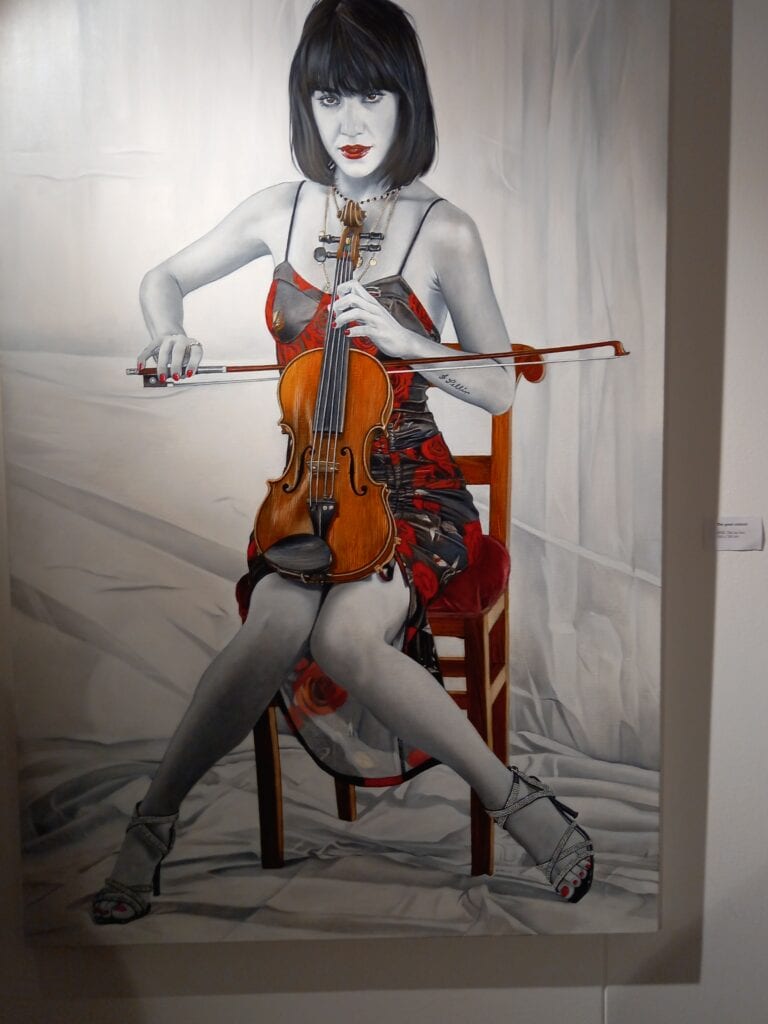 Un plauso particolare va agli organizzatori che hanno deciso di “rendere vive” le tele, invitando le donne ritratte ad esibirsi: in questo modo il linguaggio della pittura si è fuso con le note del violino della Rossetti, la voce bella e graffiante di Amara, la recitazione della Insardà; ne è scaturita un’osmosi davvero coinvolgente e affascinante.