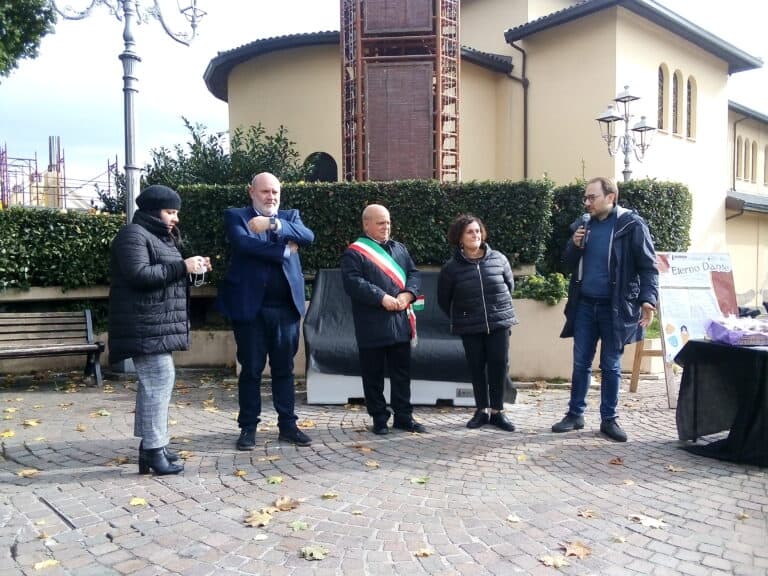 Il primo cittadino ha poi lasciato la parola all’assessore alla Cultura, Maria Grazia Gabrielli, e al presidente del Consorzio “Castelli della Sapienza”, Angelo Rossi. Entrambi hanno sottolineato la bontà della sinergia amministrativa che ha portato a questo risultato importante per la cittadinanza tutta. Insieme a Guido Ciarla della Fondazione De Cultura e alla dottoressa Letizia Corsetti del Cda del consorzio è stata quindi presentata la panchina, che oltre alla già citata terzina riporta la raffigurazione del volto del Sommo Poeta.