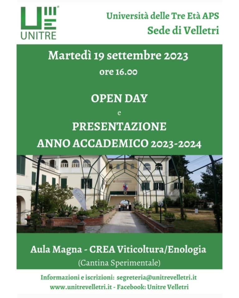 L’Open Day per presentare, almeno in parte, tutti i programmi e le attività è fissato per martedì 19 settembre a partire dalle ore 16 al CREA Viticoltura-Enologia (ex Cantina Sperimentale) in Aula Magna. Il presidente Lamberto Cioci ha così rivolto un invito agli associati e agli interessati per spronarli alla partecipazione: “ci stiamo preparando per un nuovo anno insieme, e l’Open Day è un’occasione per conoscere le nostre attività culturali ed educative. Nel corso dell’incontro verrà illustrato il programma dell’Anno Accademico, come sempre ampio nei Corsi, nelle Conferenze, nei Laboratori e nelle varie uscite. Stiamo preparando il calendario dei nostri incontri e faremo in modo di coprire tutto l’anno accademico per avere, anche interattivamente, un opuscolo di pronta lettura. Il corpo insegnante avrà modo di illustrare sinteticamente il percorso di docenza cercando anche di recepire tutti i possibili suggerimenti volti a migliorare la nostra offerta formativa”. Anche quest’anno i corsi si svolgeranno al CREA nella giornata del lunedì e nei locali della Parrocchia di S. Martino nelle altre giornate, con tutte le lezioni registrate e alcune tenute on line.