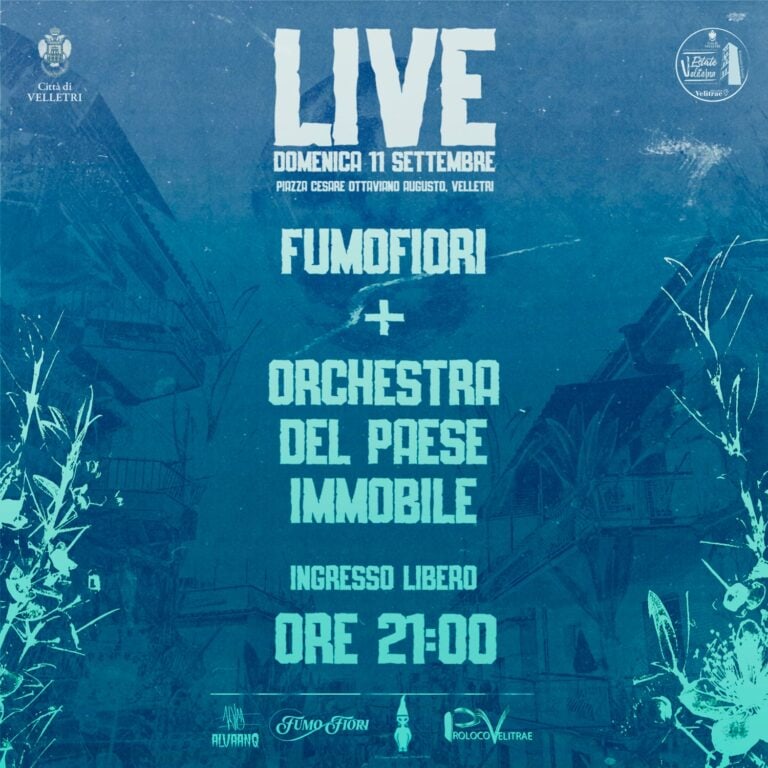 Una grande serata musicale quella prevista in Piazza Cesare Ottaviano Augusto, a Velletri, domenica 11 settembre. Un evento live che richiamerà centinaia di persone visto che sul palco della storica e monumentale piazza veliterna saliranno Fumofiori e Orchestra del Paese Immobile per uno spettacolo attesissimo fra tradizione, cultura e innovazione.