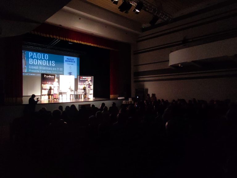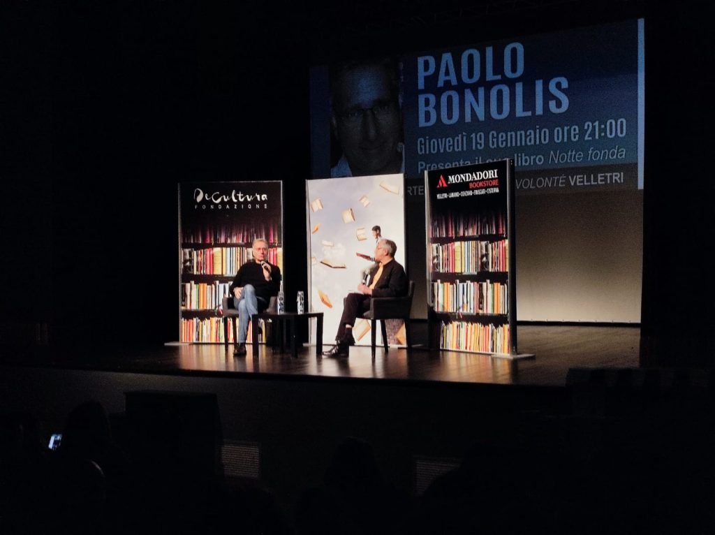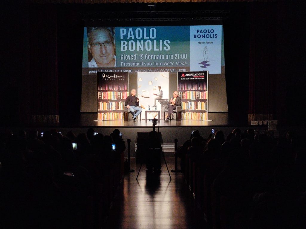 Nonostante il freddo e la pioggia, si sono ritrovate oltre trecento persone al Teatro Artemisio-Gian Maria Volonté di Velletri per l’atteso incontro con il giornalista, conduttore televisivo e scrittore Paolo Bonolis. L’evento, ideato e realizzato dalla Mondadori Bookstore di Velletri e dalla Fondazione De Cultura, è risultato frizzante e dinamico, grazie anche al brio dell’ospite, incalzato dalle domande del professor Daniele Dibennardo.