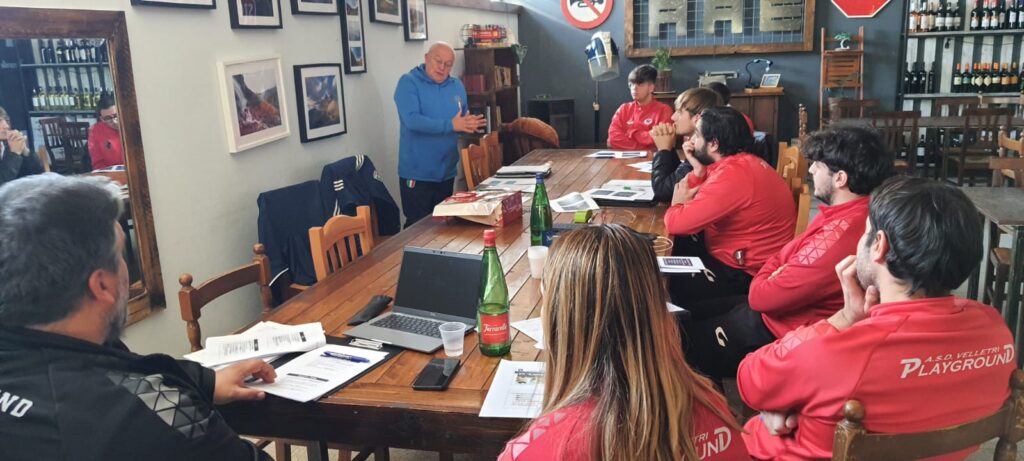 “Divertimento, gioco, tutela dei minori ma sopratutto FORMAZIONE. Sono queste le parole con cui il delegato regionale Enzo Panico e il collaboratore SGS e componente del Team Tutela dei Minori Marco Giustinelli hanno iniziato la loro “lezione” presso il Playground Sporting Center, sabato 27 gennaio. Una visita molto gradita che ha permesso ai due delegati di vedere il lavoro del nostro staff sempre pronto ed attento. Panico e Giustinelli, hanno impostato la riunione formativa in tre fasi: preparazione delle esercitazioni, attività sul campo e un piccolo de-briefing finale. Punto focale è stato l’”EVOLUTION PROGRAMME”, ovvero la metodologia federale per il corretto svolgimento degli allenamenti, che i nostri tecnici federali Strappaghetti e Fagnani utilizzano da più di un anno. Molto piacevole è stata la risposta dei ragazzi che hanno accolto ben volentieri i consigli di persone esperte e sempre attente alle tematiche dei più piccoli. L’incontro si è concluso con una piccola riunione per tirare le somme di una mattina così importante. In questo incontro abbiamo capito appieno quale sia la volontà del ragazzo, da noi messo sempre al centro del progetto, ovvero quella di divertirsi facendo quello che più gli piace. Tutta la nostra società vuole ringraziare Enzo e Marco per la cordialità, professionalità e correttezza posta nei nostri confronti. Sperando che questo sia solo l’inizio di un nuovo percorso.