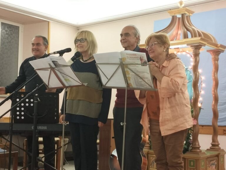 Sono stati tre piacevoli giornate di festa quelle svoltesi ad Acqua Lucia, presso la chiesa della Madonna del Rosario, che per tali eventi dispone di una sala adiacente atta ad attività ricreative, a luogo d’incontro nonché punto di riferimento per molti parrocchiani e non. La serata più suggestiva si è svolta sabato 7 ottobre, con una processione tra le viuzze della campagna a nord di Velletri, dove ciascun partecipante portava una candela flambeau per proteggere la fiamma dall’aria e dal vento, che in fila illuminavano la notte. Il giorno dopo, domenica, il Maestro pianista Fabio Ludovisi ha accompagnato con vari sottofondi musicali, Vivaldi, Shostakovic, Messnet, Morricone, eccetera, le letture di poesie della poetessa Angela Cuomo, tratte dalla sua ultima raccolta intitolata “Nel mondo…ma non del mondo”, appena uscita in circolazione: il connubio pianoforte poesia è piaciuto molto a pubblico.