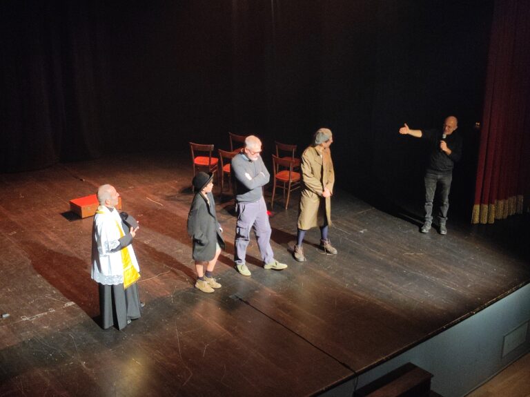 Il Teatro Artemisio-Volontè di Velletri ha ospitato una doppia matinée dello spettacolo “Sciabbadai”, accogliendo oltre mille studenti da tutti i Castelli Romani per lo spettacolo scritto e diretto da Gabriele Marcelli e con un cast eccellente in scena: Luigi Pisani, Natale Russo, Jonah Marcelli. L’esibizione, prodotta da Arteidea Eventi e Servizi per la regia di Gabriele Marcelli e l’assistenza alla regia di Ludovica Iacoangeli, si è tenuta alla vigilia della “Giornata della Memoria” visto l’alto valore sociale, simbolico e culturale del testo messo in scena.