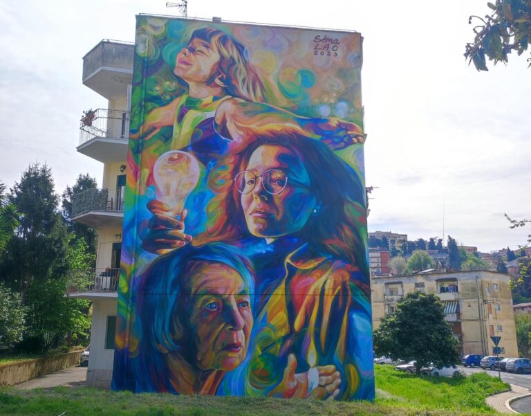 L’attenzione logicamente è rivolta tutta allo stupendo murales realizzato da Sêma Lao che ha ritratto tre donne, una del passato, una del presente e una meravigliosa bambina con la mente al futuro.